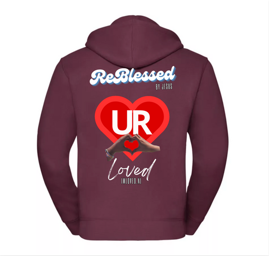 In this picture you can see how the tracksuit pants, the Original ReBlessed T-shirt and the UR Loved zipped hoodie together form a beautiful combination. As you can see, you can perfectly read the name ReBlessed By Jesus because it flows over into the different items.